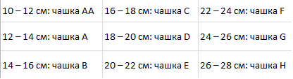 Для определения размера чашки необходимо знать два обхвата: