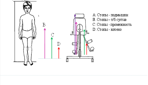 Передне-заднеопорный вертикализатор с разведением ног 30 градусов предназначен для детей от 50 см (1 размер) до 150 см (3 размер)